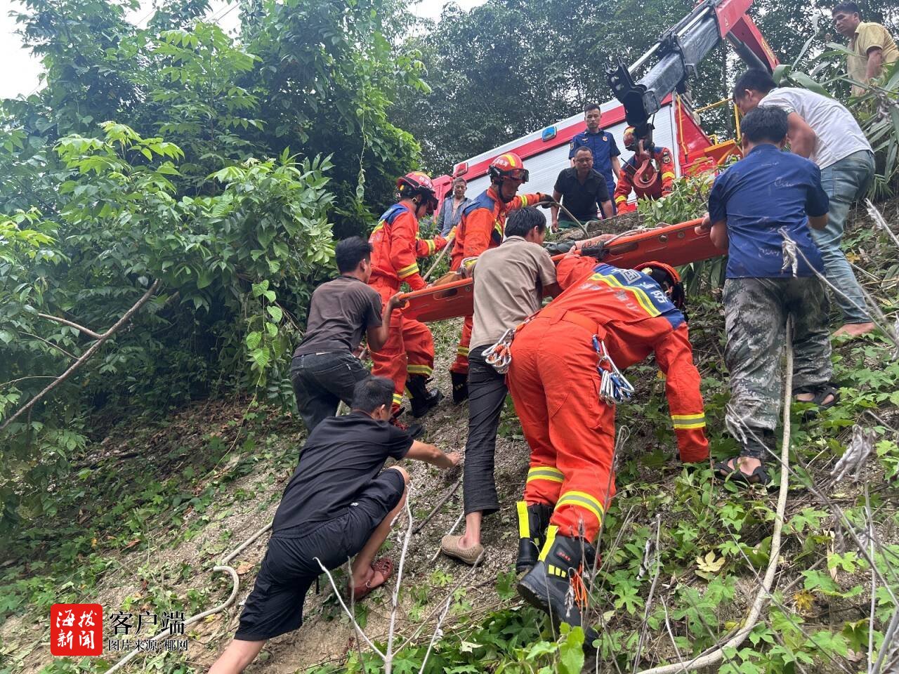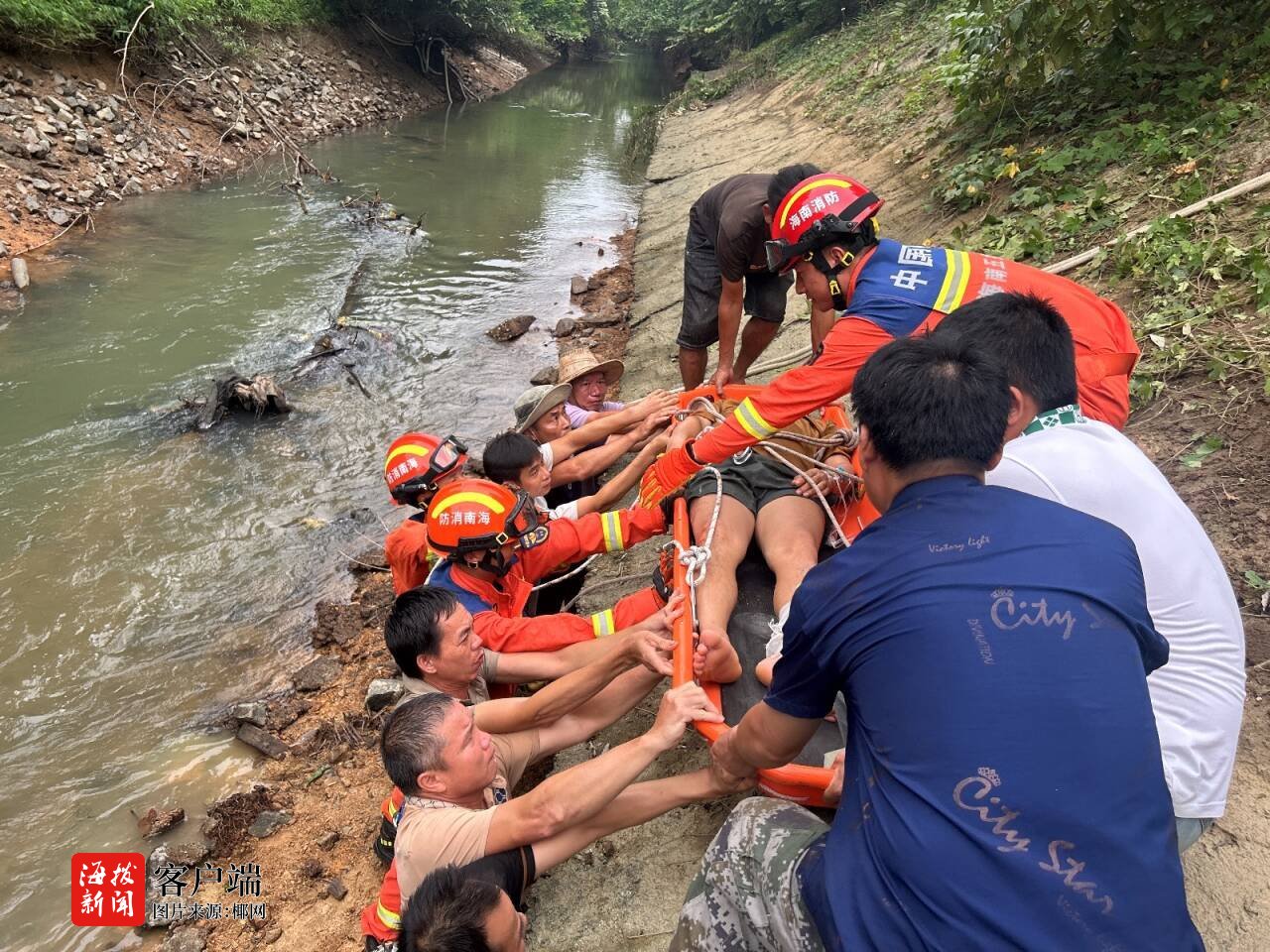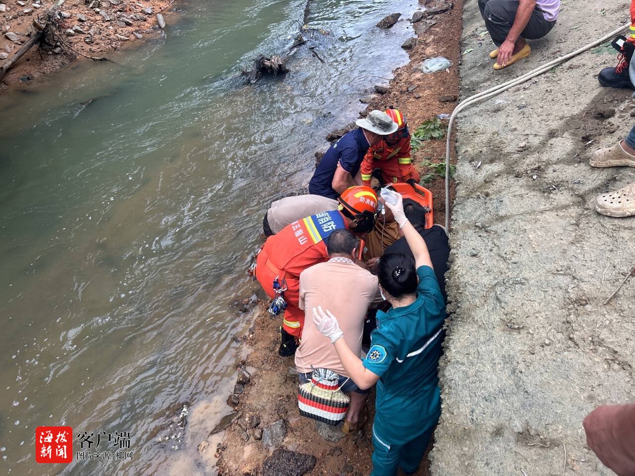 男人河堤观鱼不小心摔落五指山市消防紧迫救援